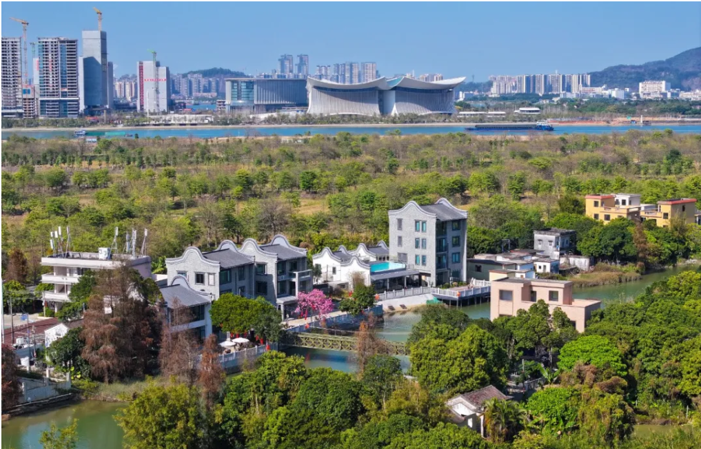 前锋水乡总占地676亩,项目范围内河涌总长3.35千米与南沙明珠农业公园共同组成靓丽的万亩田园水乡景观,这里水、田、林、屋交映成趣,是大湾区内极具特色的休闲旅游目的地。